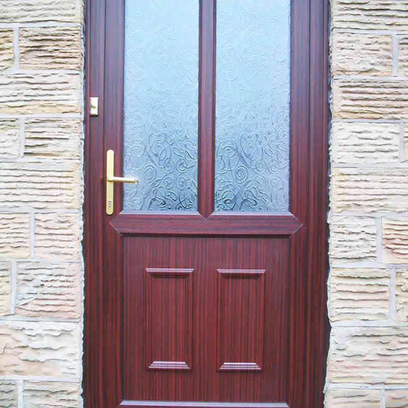 Our composite doors are made of thermoset GRP (glass-reinforced polyester) and compression molded to create high-definition panels with a realistic timber appearance, thanks to the renowned oak tree woodgrain finish. The stiles and rails are made of water-resistant polymer bonded to the skin and filled with a 100% CFC-free polyurethane core for insulation.
